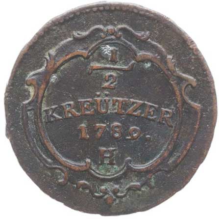 641. Cu 1/2 Krejcar 1789 H (pro Přední Rakousko), Pol.53, Her.445 R! 1/1 600,- --.-