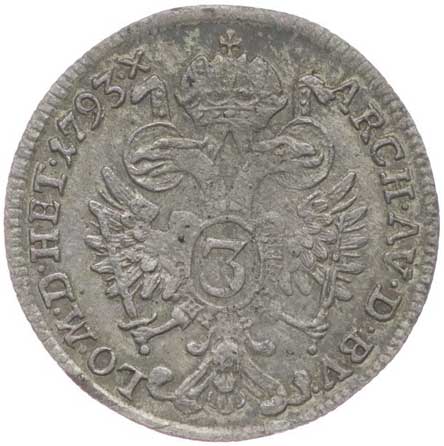 688. 3 Krejcar 1793 F, Her.965 R! 2/1- 3400,- --.-