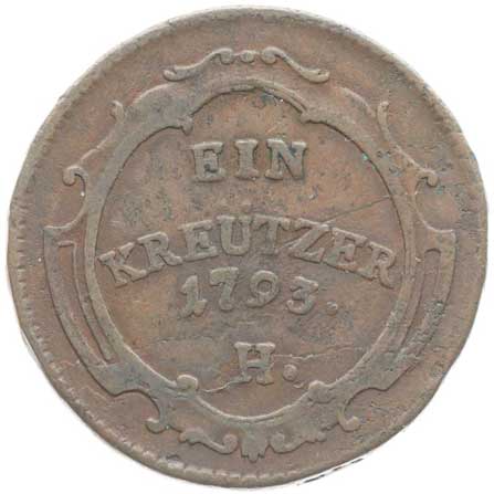 691. Cu Krejcar 1793 H, Günzburg, Her.1071 -1/1- 300,- --.-