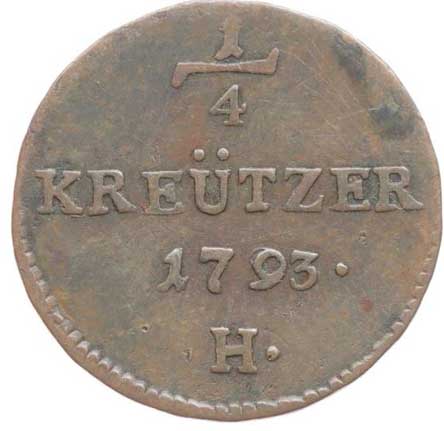 696. Cu 1/4 Krejcar 1793 H, Günzburg pro Přední Rakousko R! -1/1- 1500,- --.-