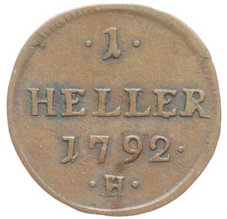 699. Cu Haléř 1792 H, Günzburg R! 1/1 1700,- --.-