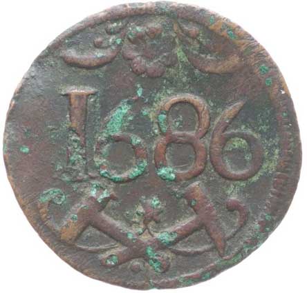 | 767. | Důlní známka 1686, Banská Štiavnica, Her.-, Nech.1713, Neum.190 RR! | -1/1- | 2800,- | --.- |