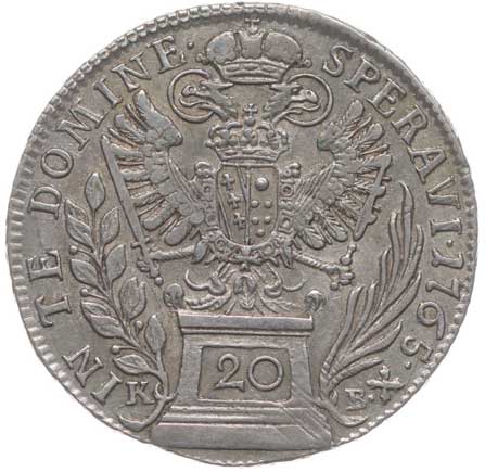 | 798. | 20 Krejcar 1765 KB, Nový.26, Nov.18a | tém.0/0 | 1600,- | --.- |
