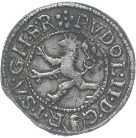 1410. Rudolf II. - Malý (černý) peníz 1585, Kutná Hora - Šatný