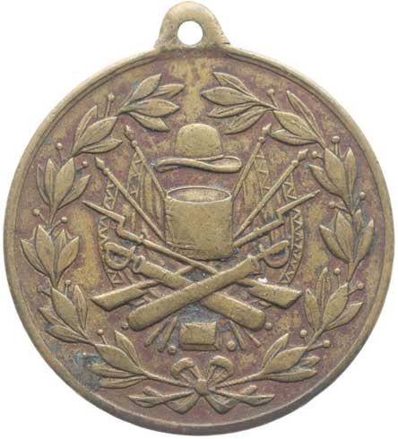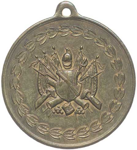 Vojenské atributy ve věnci / 9řádk.nápis, Bronz 33 mm orig.raž.ouško