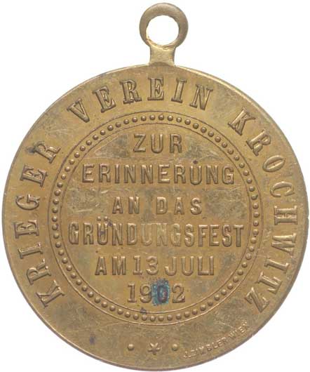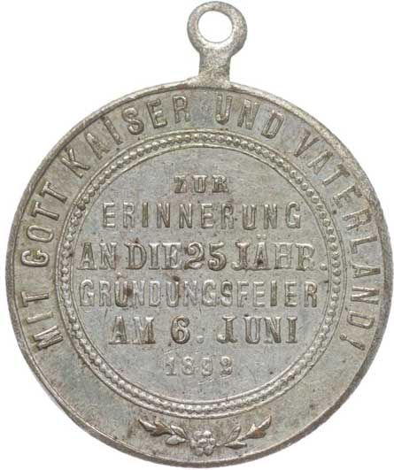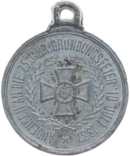 spolku 10.7.1887, vojenský kříž ve věnci, opis / korunovaný rakouský