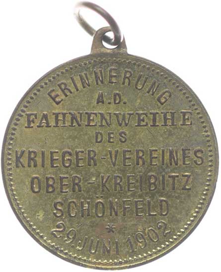 svěcení praporu 29.6.1902, poprsí císaře zprava, opis / 6řádk.nápis,
