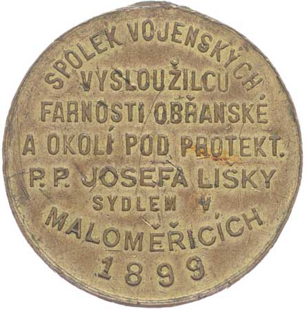 pod protekt. p.p. Josefa Lišky 1899, vojenské atributy ve věnci /