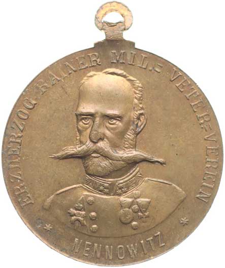 veteránů, poprsí arcivévody Rainera čelně, opis / 3řádk.nápis, opis,