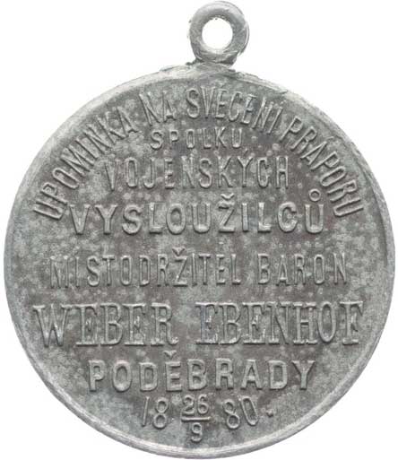 místodržitel baron Weber Ebenhof 26.9.1880, znak města / 8řádk.nápis