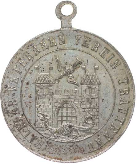 cechovní znak držený krokodýly, Sign.M.H.T.D., Bronz 39 mm, 30,76 g