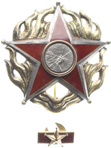 Vojenské atributy ve věnci / 4řádk.nápis, opis, Sn 38,5 mm
