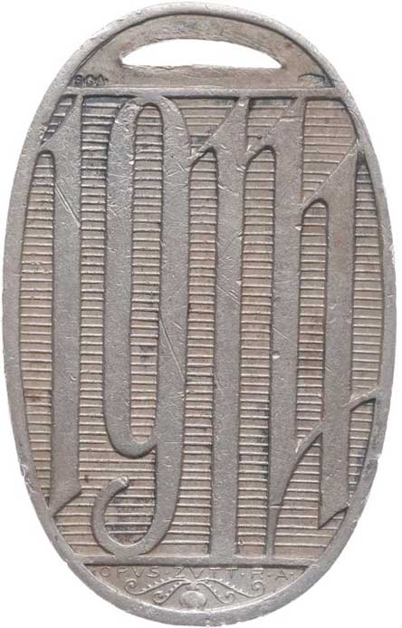 7řádk.nápis, Al 34 mm orig.raž.ouško