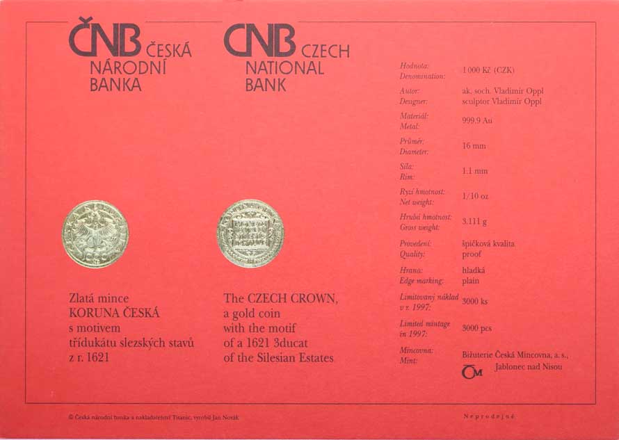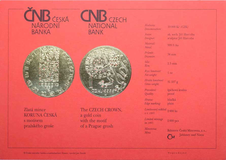 1464. Karta (certifikát) pro minci 10000 Kč 1997 - Karel IV. N 300,- --.-