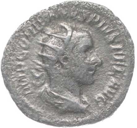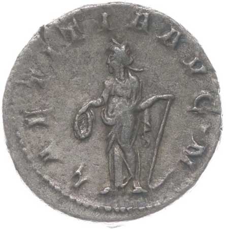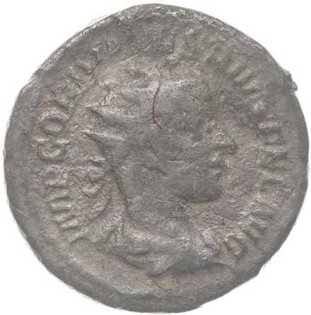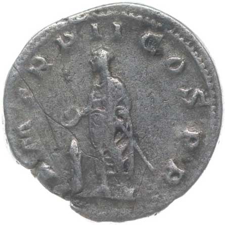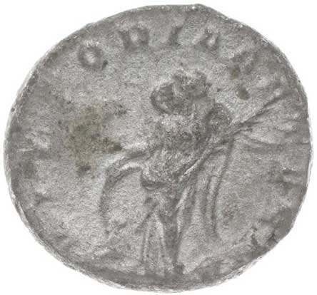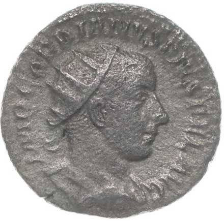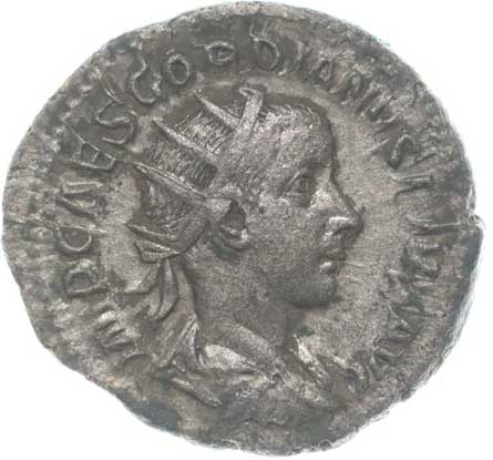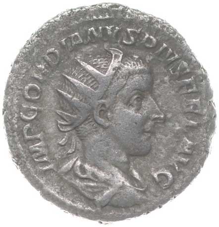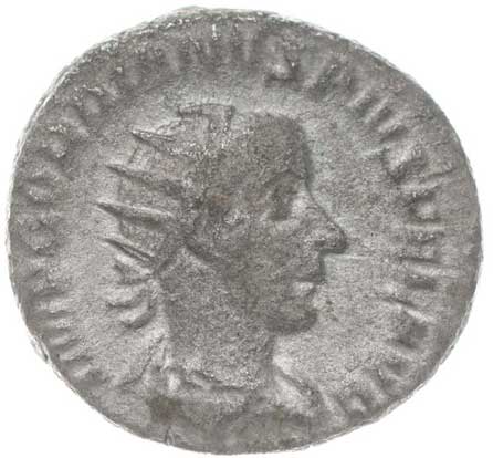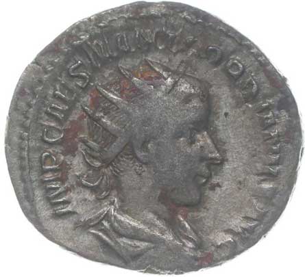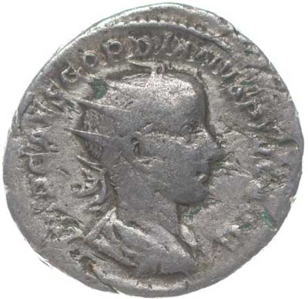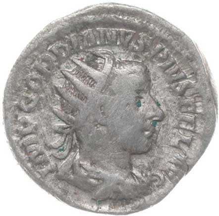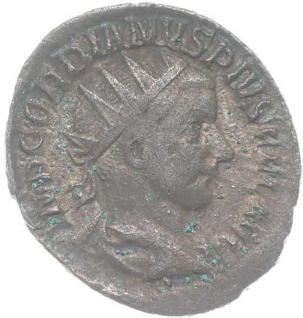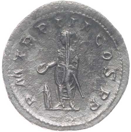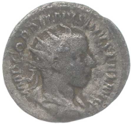 1486. AR Antoninianus, Rv:"P.M.TR.P.III.COS.II.P.P.", stojící Gordianus