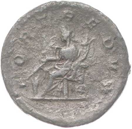 1475. AR Antoninianus, Rv:"FORT. REDUX", sedící Fortuna zleva
