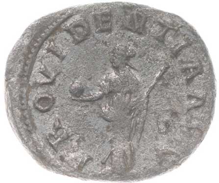 1474. AR Antoninianus, Rv:"FIDES MILITVM" stojící Fides zleva