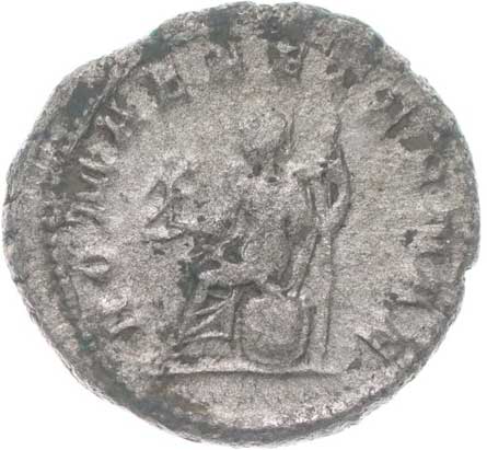 1489. AR Antoninianus, Rv:"ROMAE AETERNAE", sedící Roma zleva