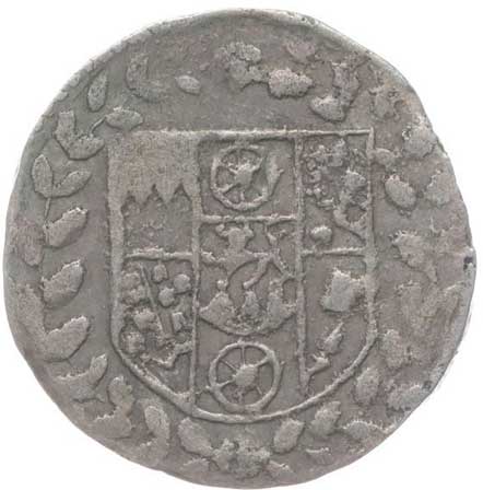 1633. Jarmareční suvenýr b.l., poprsí zprava, opis / velký rodový znak, opis
