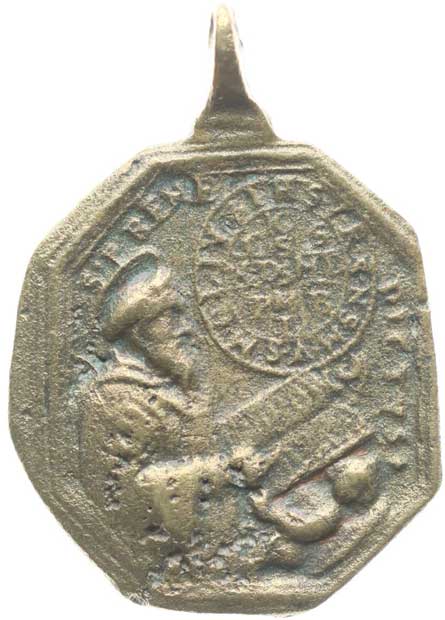 1662. Sv.Prokop s pedem a křížem drží čerta, opis / Sv.Benedikt nad
