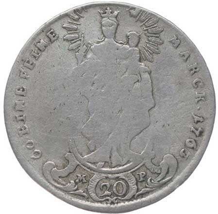 1671. 20 Krejcar 1763 L-MP, Sch.123, Cr.39 2/2- 160,- --.-