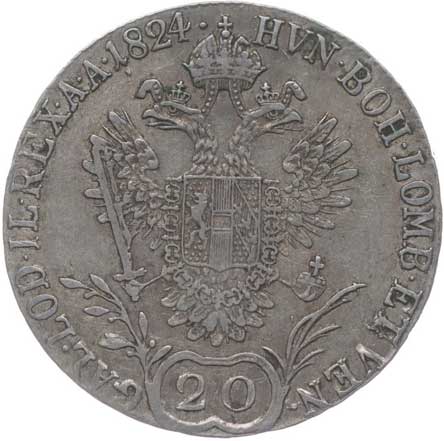 1824. 20 Krejcar 1825 E dr.just. v av. 2/2 240,- --.-