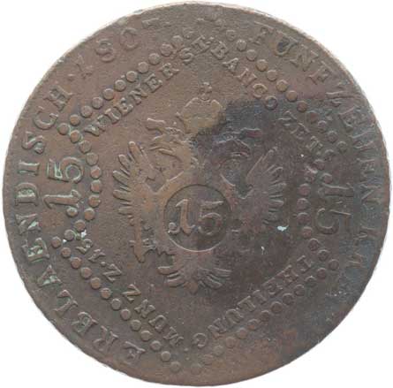 1829. Cu 15 Krejcar 1807 G, minc.Nagybanya -2/2- 700,- --.-