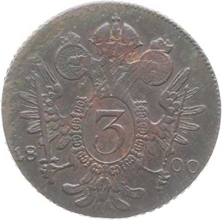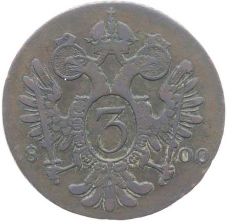 1836. Cu 3 Krejcar 1800 E, minc.Karlovský Bělehrad dr.ďubky v av. 2/1- 440,- --.-