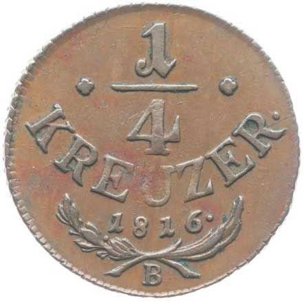 1846. Cu 1/4 Krejcar 1816 B, minc.Kremnice 1/1 160,- --.-
