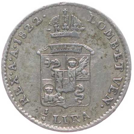 1857. 1/2 Lira 1822 V, P.27 2/1- 400,- --.-