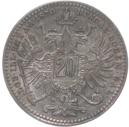 1893. 20 Krejcar 1870 b.zn. 1/1 220,- --.-