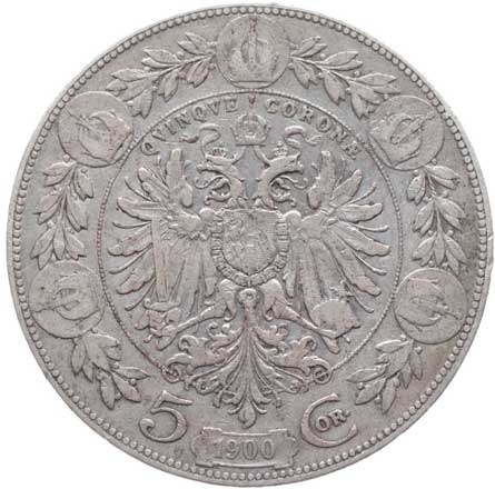 1902. 5 Koruna 1900 b.zn. 2/1- 400,- --.-