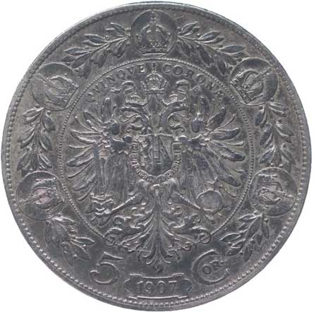 1904. 5 Koruna 1907 b.zn. -1/1 1000,- --.-