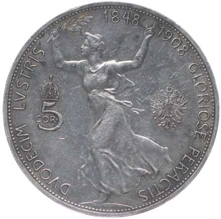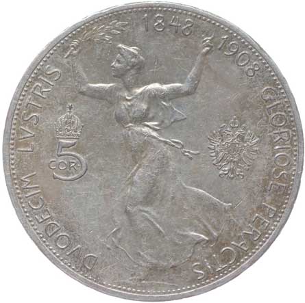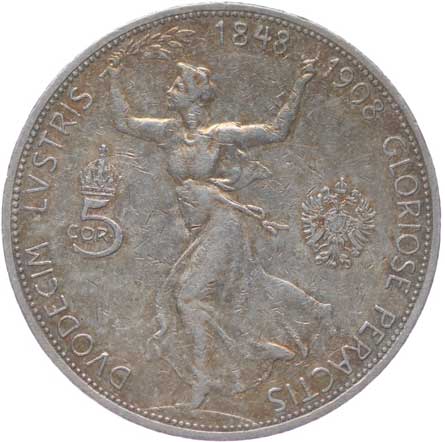1909. 5 Koruna 1908 b.zn. - jubilejní -1/1 1000,- --.-