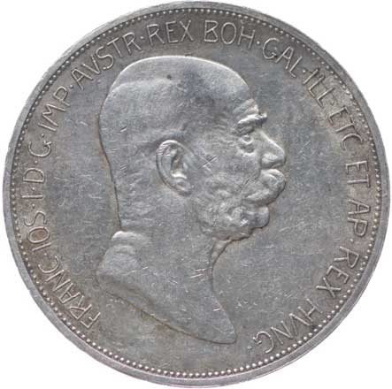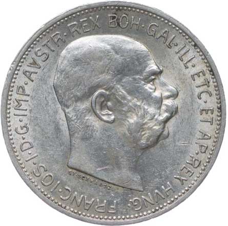 1907. 5 Koruna 1908 b.zn. - jubilejní st. po sp. v av. 2/2 360,- --.-