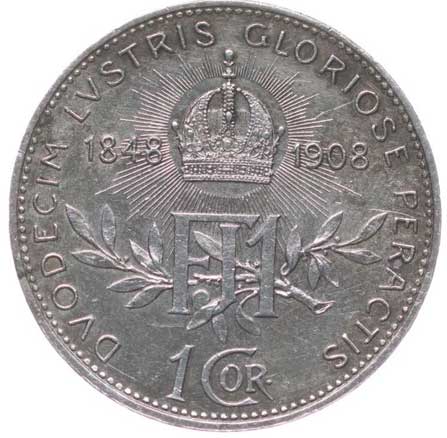 1906. 5 Koruna 1908 b.zn. - jubilejní tém.0/0 800,- --.-
