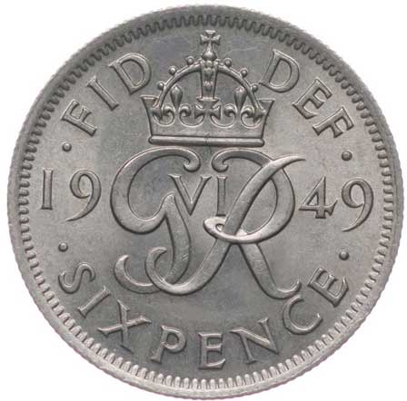 3303. 6 Pence 1949, KM.875 0/0 80,- --.-