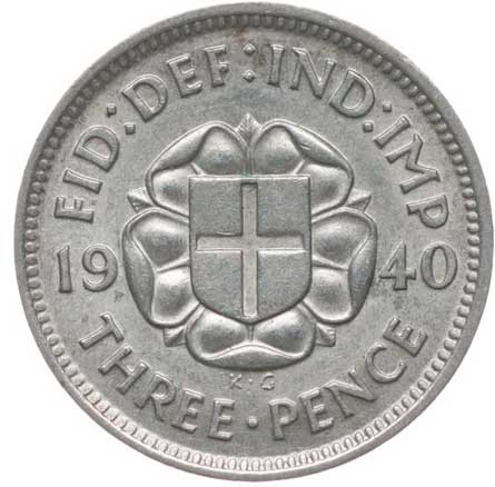 3305. 3 Pence 1940, Ag, KM.848 tém.0/0 100,- --.-