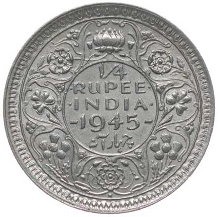 3354. 1/4 Rupie 1945, KM.547 tém.0/0 140,- --.-