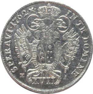 807. 20 Krejcar 1758 b. zn. Vídeň Nov. 79 R: nedor. znak 2/1- 440,- --.-