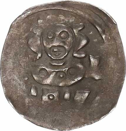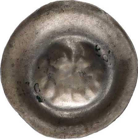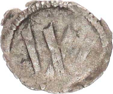 | 477. | Čtyřhranný peníz s hladkou štíhlou orlicí staršího typu (Markrabs