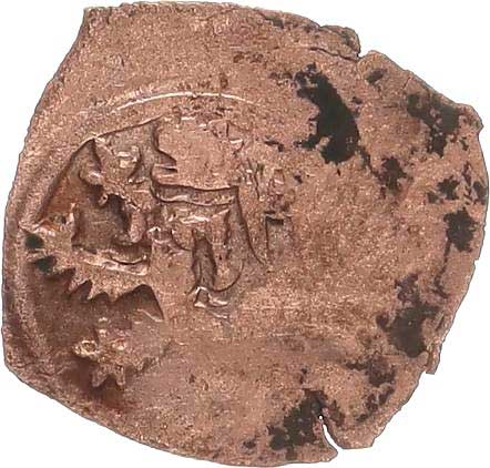 | 476. | Měděný peníz (flůtek), se lvem a čtyřrázem