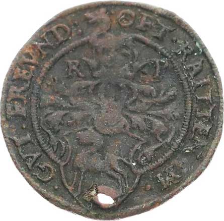 | 474. | Měděný peníz (flůtek), se lvem a čtyřrázem