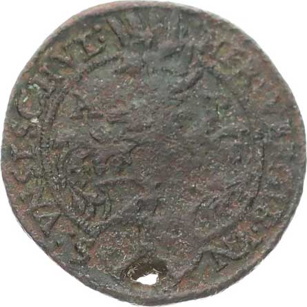 uellacherin (+ 1575) Cu 24 mm 3,14 g Prokisch B.180/5 (nález Starý Kolín) +podložní lístek dírka |