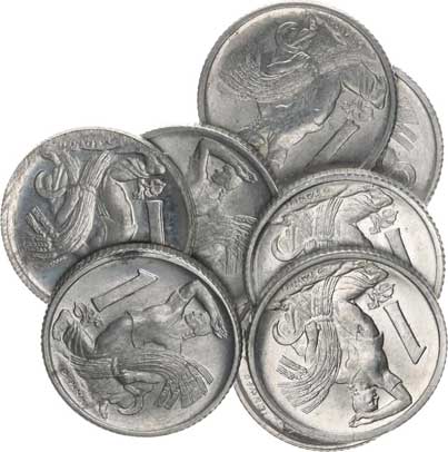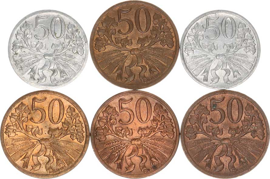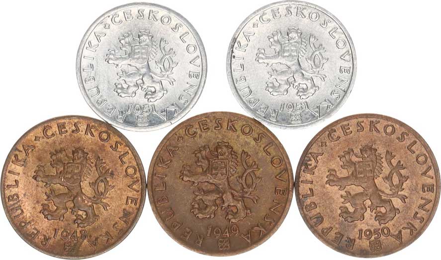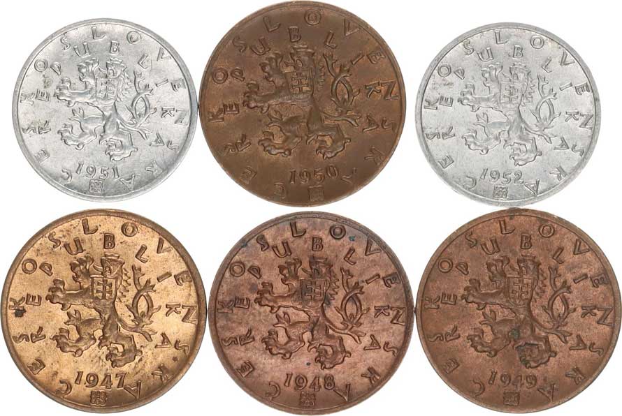 | 2645. | 1 Kčs 1947 - Al "FALZUM"; +1950 (2x), 1951 (2x), 1952 (2x), 195