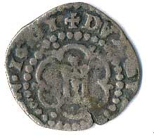 | 837. | Soldino 1601, stylizovaný zámek v Janově, opis: +DVX.GVB.REIP.GEN /8