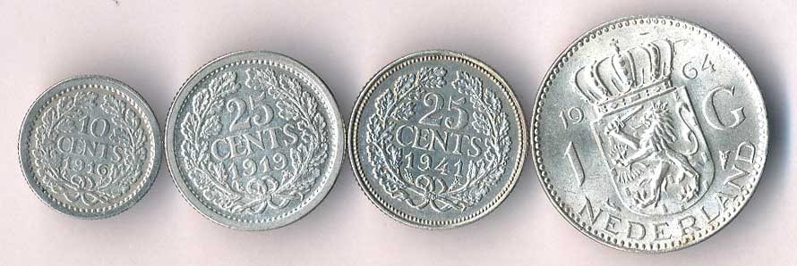 | 887. | 10 Cents 1916, 25 Cents 1919,1941, 1 Gulden 1964, Ag, 4ks | 0-1 | 230,- | --.- |