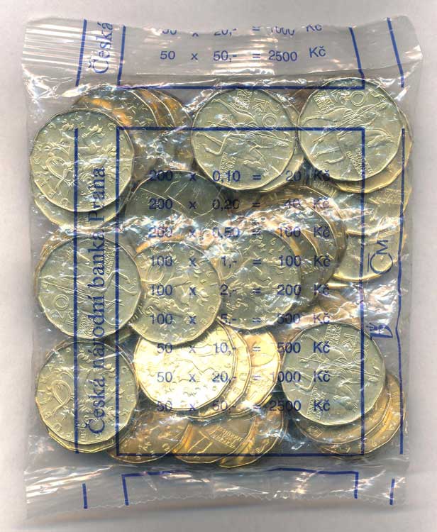 | 1274. | 20 Kč 1996, uzavřený bankovní sáček s popisem, 50 ks mincí | N | 8000,- | --.- |